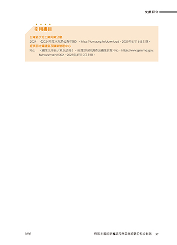 文獻評介 3 3 3 3 引用書目 台灣區水泥工業同業公會 2024 《2024年度水泥業公會年報》。https://tcmaorg.tw/download,2025年6月16日上線。 經濟部地質調查及礦業管理中心 N.d. 〈礦業法專區/原民諮商〉。經濟部地質調查及礦業管理中心,ht tp3s:/ /www.gsmma.gov. tw/nss/s/main/H002,2025年4月10日上線。 (285) 榨取主義的新舊詛咒與臺灣經驗的初步對話 97