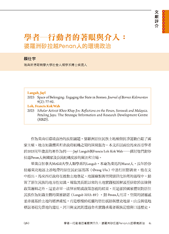 (361) 學者─行動者的著眼與介入:婆羅洲砂拉越Penan人的環境政治 61