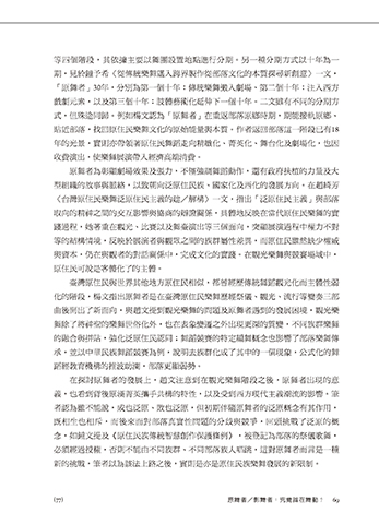 化的階段,楊文指出原舞者是在臺灣原住民樂舞歷經祭儀、觀光、流行等變奏三部