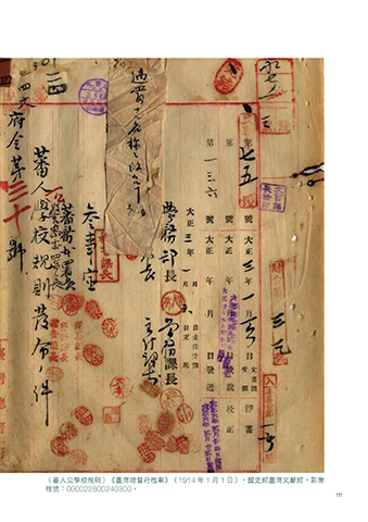 〈蕃人公學校規則〉《臺灣總督府檔案》(1914 年 1 月 1 日),國史館臺灣文獻館,影像 檔號:000022600240300。 111