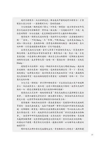 我期待今天的場合,就是一個政府和原住民族之間的 Sbalay。我把過