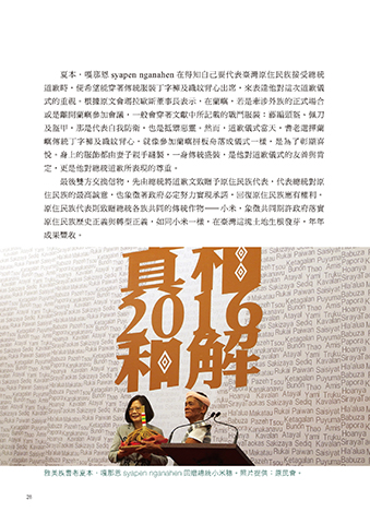 雅美族耆老夏本.嘎那恩 syapen nganahen 回贈總統小米穗。照片提供:原民會。