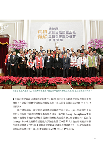 經由各族族人歷經 103 場次的會議推選,產生第一屆原轉會原住民族 16 族及平埔族群代表。