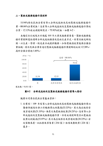 業,88.06%企業則無;沒有導入全新或技術改良製程或服務後檯作業的