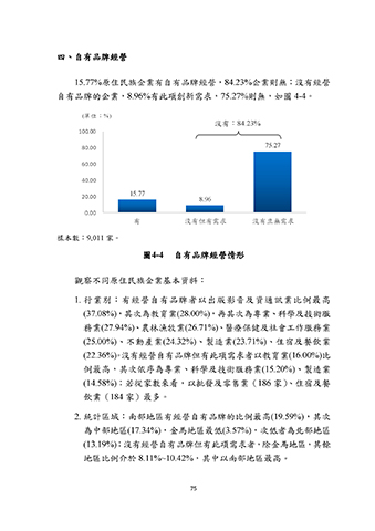 15.77%原住民族企業有自有品牌經營,84.23%企業則無;沒有經營