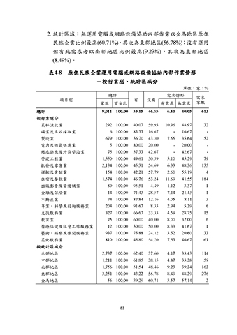 表4-8 原住民族企業運用電腦或網路設備協助內部作業情形