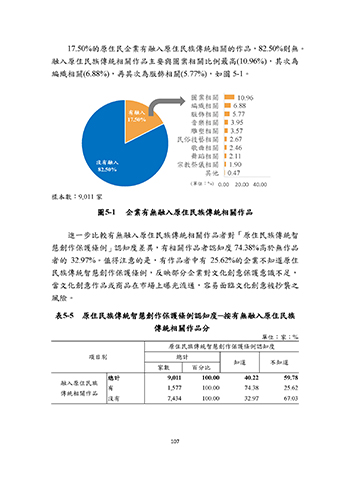 17.50%的原住民企業有融入原住民族傳統相關的作品,82.50%則無。