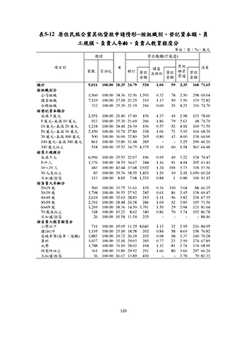 表5-12 原住民族企業其他貸款申請情形─按組織別、登記資本額、員