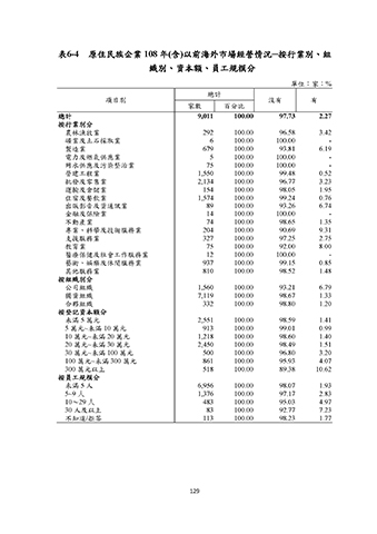 表6-4 原住民族企業 108 年(含)以前海外市場經營情況─按行業別、組