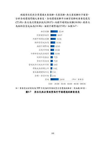 圖6-7 原住民族企業經營海外市場遭遇困難重要度