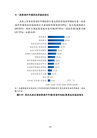 圖6-10 原住民族企業經營海外市場(含海外設點)需要政府協助項目