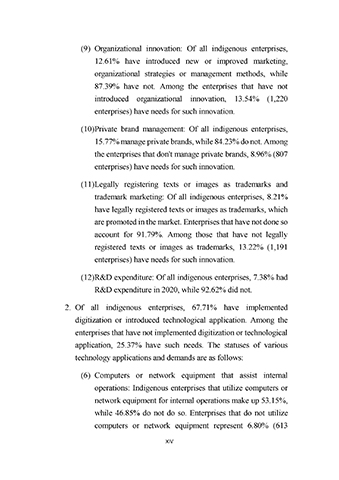 (12) R&D expenditure: Of all indigenous enterprises, 7.38% had