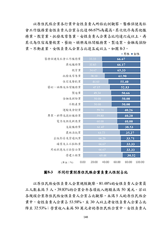 圖8-3 不同行業別原住民族企業負責人性別占比