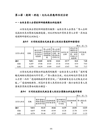 表8-5 不同性別原住民族負責人性別企業創新研發情形
