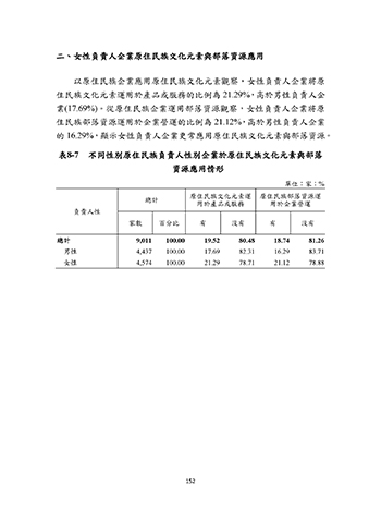 的 16.29%,顯示女性負責人企業更常應用原住民族文化元素與部落資源。