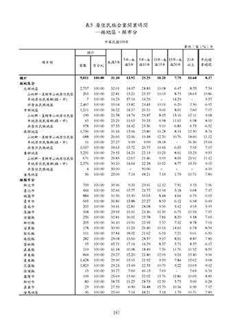 山地鄉、直轄市山地原住民區 190 100.00 21.58 14.74 29.47 8.95 13.16 12.11 9.68