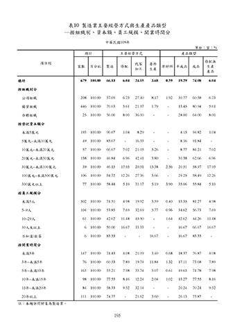 表10 製造業主要經營方式與生產產品類型