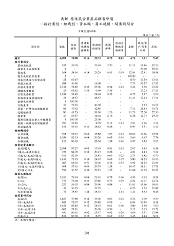 ─按行業別、組織別、資本額、員工規模、開業時間分