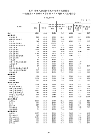 ─按行業別、組織別、資本額、員工規模、開業時間分