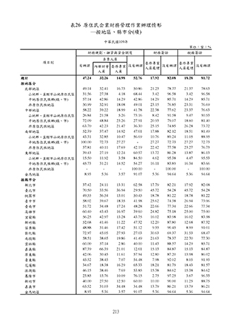 臺中市 58.02 39.67 18.35 41.98 25.62 74.38 26.94 73.06