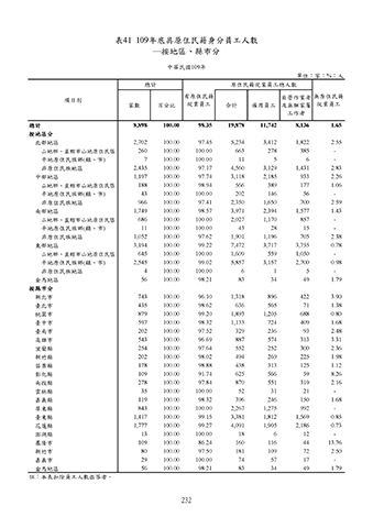平地原住民族鄉(鎮、市) 2,545 100.00 99.02 5,857 3,157 2,700 0.98