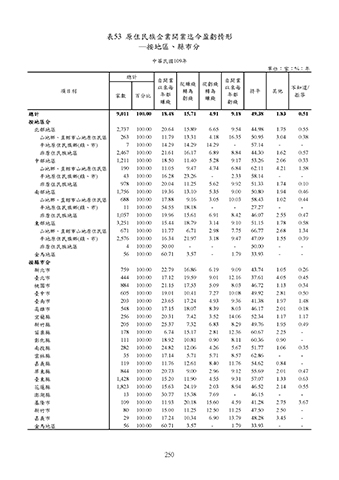 非原住民族地區 2,467 100.00 21.61 16.17 6.89 8.84 44.30 1.62 0.57