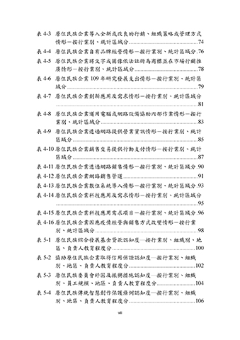 表 4-11 原住民族企業透過網路銷售情形-按行業別、統計區域分 . 90