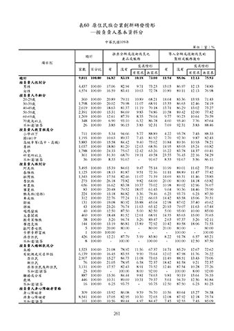 非原住民及新住民 3,131 100.00 17.57 82.43 8.91 73.52 12.46 87.54 10.28 77.26