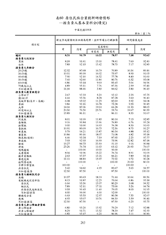 非原住民及新住民 9.55 90.45 11.40 79.05 8.05 91.95