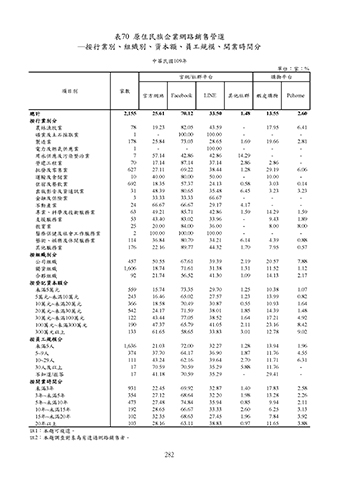 ─按行業別、組織別、資本額、員工規模、開業時間分