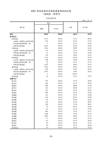 平地原住民族鄉(鎮、市) 2,576 100.00 63.86 36.14