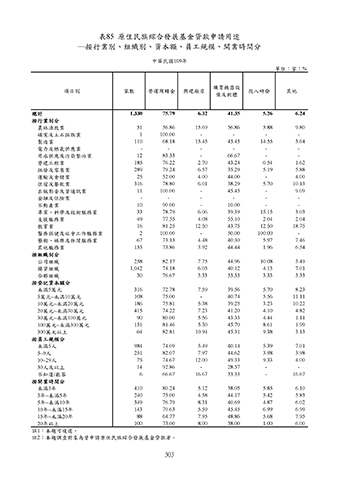 ─按行業別、組織別、資本額、員工規模、開業時間分