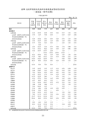 苗栗縣 3.88 6.98 3.88 3.10 - 1.55 1.55 3.10