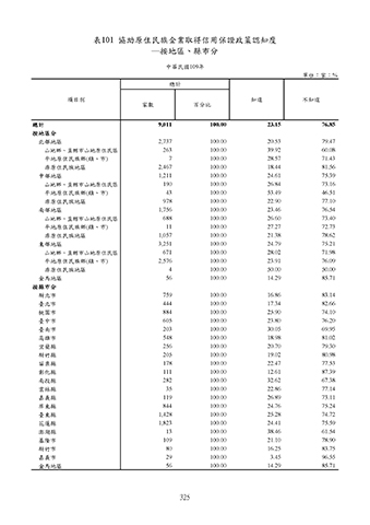 山地鄉、直轄市山地原住民區 190 100.00 26.84 73.16