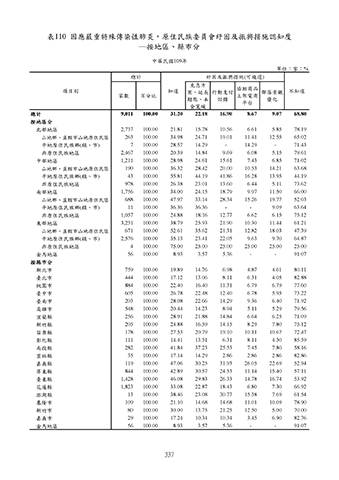臺東縣 1,428 100.00 46.08 29.83 26.33 14.78 16.74 53.92