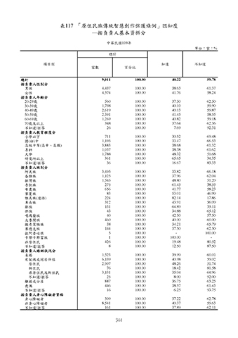 表117 「原住民族傳統智慧創作保護條例」認知度