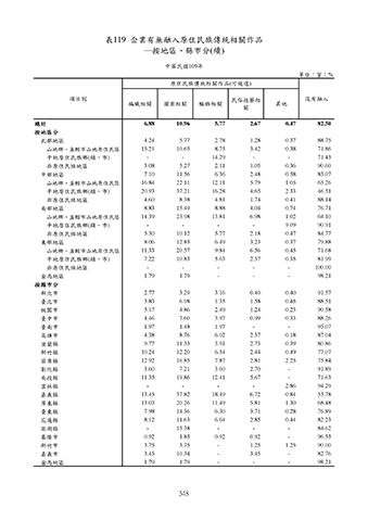 非原住民族地區 3.08 5.27 2.11 1.05 0.36 90.60