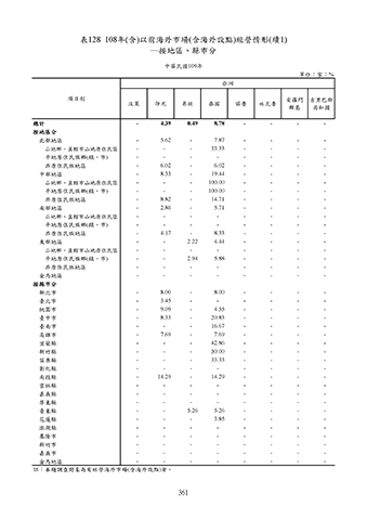表128 108年(含)以前海外市場(含海外設點)經營情形(續1)