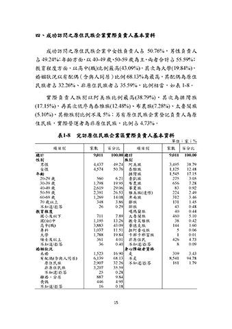 表1-8 完訪原住民族企業區實際負責人基本資料
