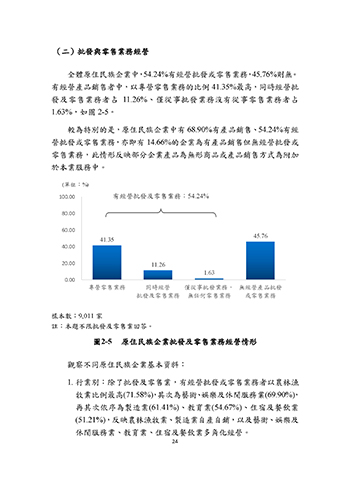 較為特別的是,原住民族企業中有 68.90%有產品銷售、54.24%有經