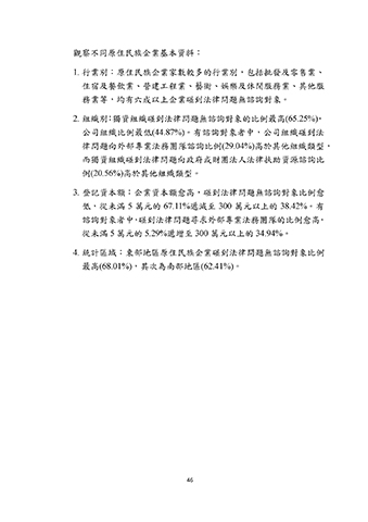 務業等,均有六成以上企業碰到法律問題無諮詢對象。