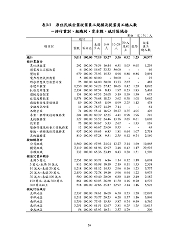 表3-1 原住民族企業從業員工規模及從業員工總人數