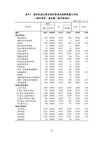 表3-3 原住民族企業自營作業者及無酬家屬工作者
