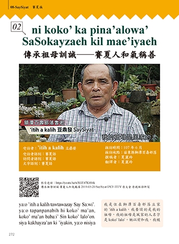訪問者語別:賽夏語 撰稿者:夏麗玲