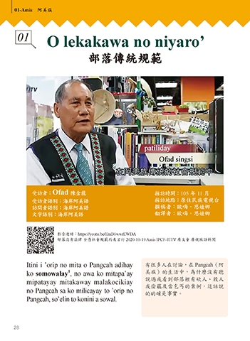 文字語別:海岸阿美語 翻譯者:歐嗨.思娃娜