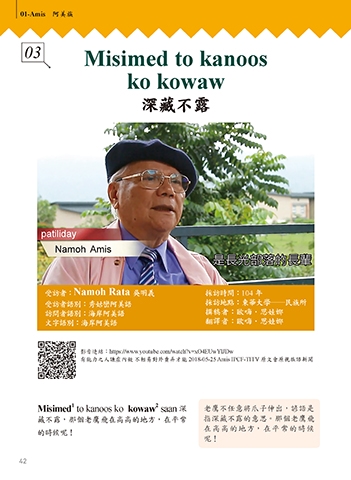 文字語別:海岸阿美語 翻譯者:歐嗨.思娃娜