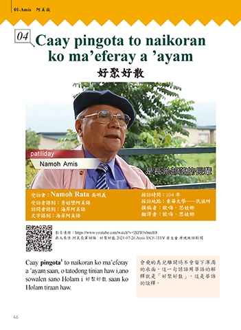 文字語別:海岸阿美語 翻譯者:歐嗨.思娃娜
