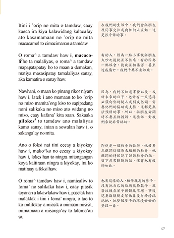 Itini i ’orip no mita o tamdaw, caay 在我們的生活中,我們會與朋友