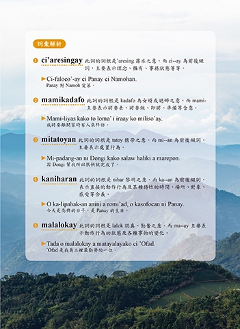 3 mitatoyan 此詞的詞根是 tatoy 携帶之意。而 mi--an 為前後綴詞,