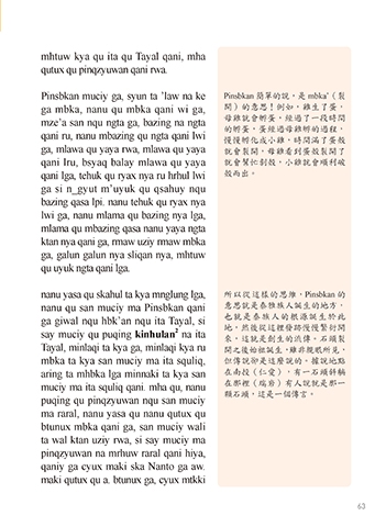 ga giwal nqu hbk’an nqu ita Tayal, si 也就是泰族人的根源誕生於此